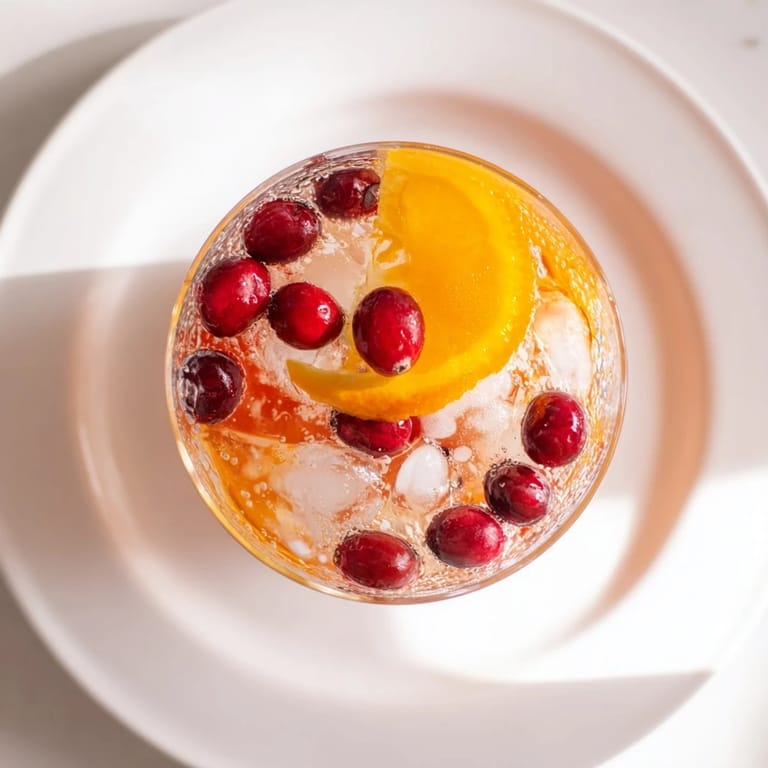 - Serve over ice, garnished with fresh cranberries and orange slices if desired.