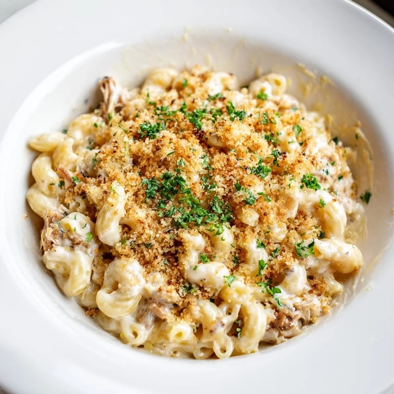 I first tried combining pulled pork and macaroni at a summer party and it was an instant hit. The smoky pork contrasts perfectly with creamy cheese and crunchy breadcrumbs—everyone wanted seconds.