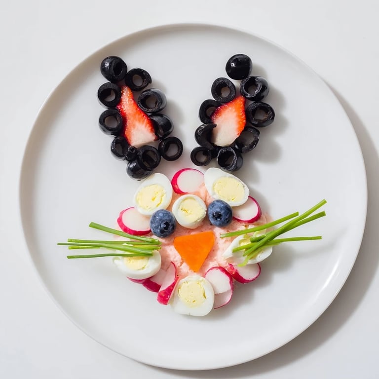 The beauty of this recipe is its flexibility. Once you understand the framework—pink ears, white face, olive outline—you can swap ingredients based on what you love or what's in season. I've made autumn versions with roasted beets and white cheeses, summer versions bursting with raspberries, and winter versions using pomegranate seeds for a deeper pink. Your bunny will be entirely yours, reflecting what's happening in your kitchen and season right now.