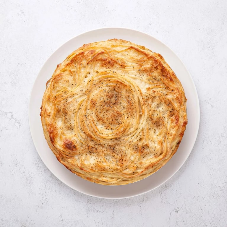 Pin it A playful twist on the Roman classic, this baked pasta pie features layers of crispy spaghetti, creamy Pecorino Romano, and plenty of cracked black pepper, all baked to golden perfection for a comforting, sliceable dish.