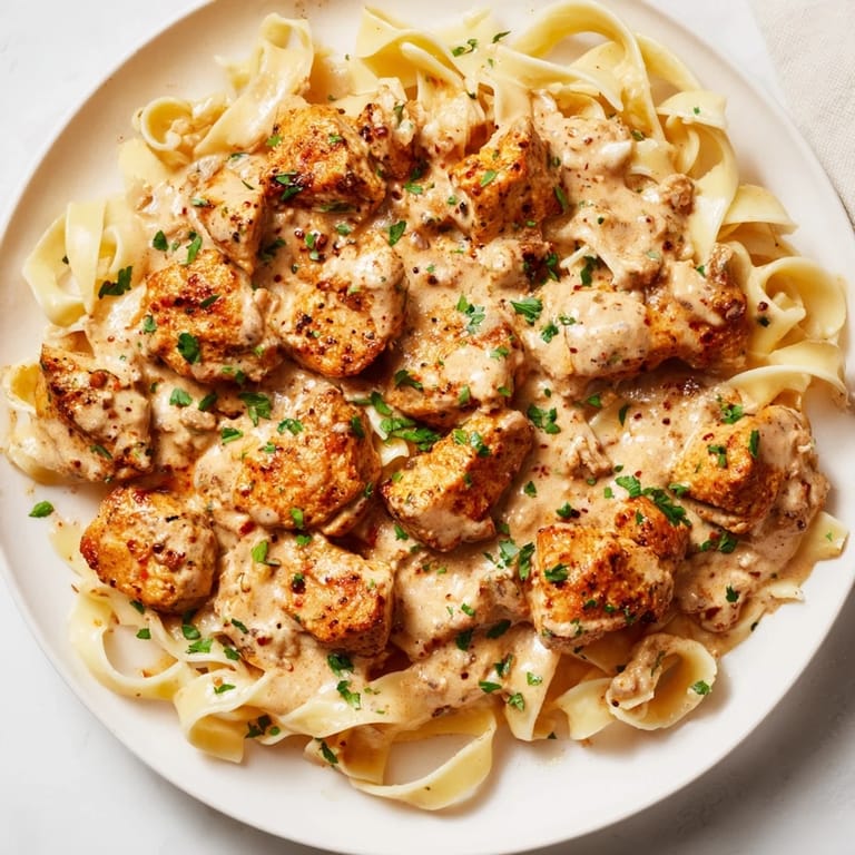 Pin it A bold, creamy pasta dish featuring tender chicken, zesty spices, and a buttery garlic-Parmesan sauce with a hint of cayenne. Perfect for a comforting dinner with a kick.