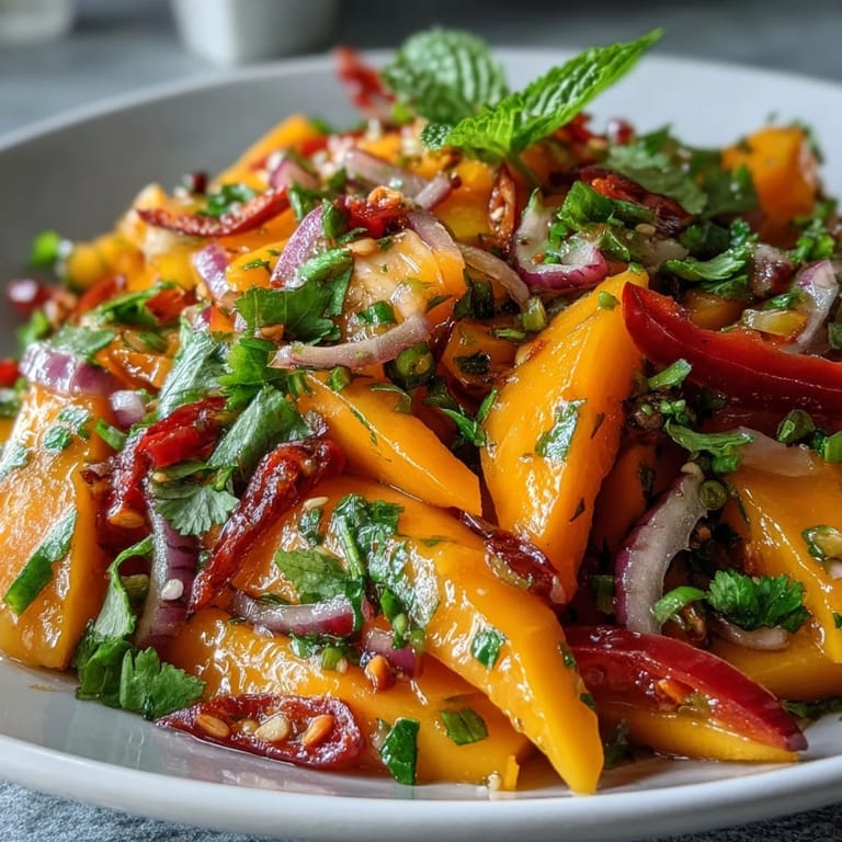 Pin it I stood in my kitchen one sweltering July afternoon, craving something that would wake up my tastebuds without weighing me down. The mangoes on my counter had reached that perfect stage of ripeness where they practically beg to be eaten. I started slicing, tossing in whatever crisp vegetables I had from the farmers market run that morning. When I hit it with that lime honey dressing, I knew I had stumbled onto something magical. My roommate walked in, took one bite, and immediately asked for the recipe.