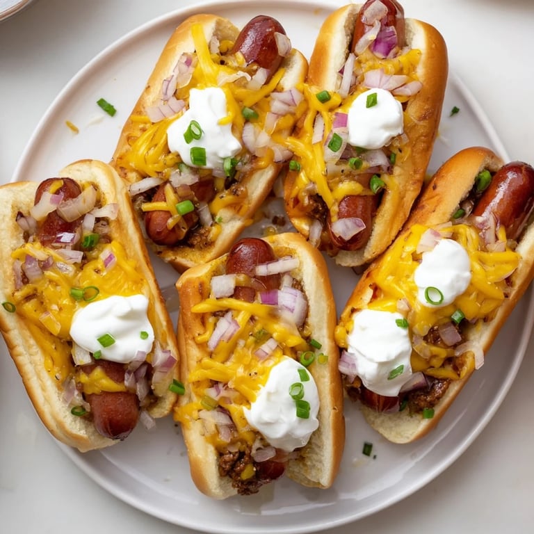 This baked dish features sliced beef hot dogs nestled in buttered buns, topped with prepared chili and shredded cheddar cheese. Sprinkled with chopped onion and seasoned with garlic powder, it’s baked until golden and bubbly. Garnished with fresh chives or green onions, and a dollop of sour cream if desired, this hearty dish suits relaxed dinners or gathering meals. Variations include plant-based hot dogs or alternative cheeses for varied flavors. Serve warm for a comforting experience.