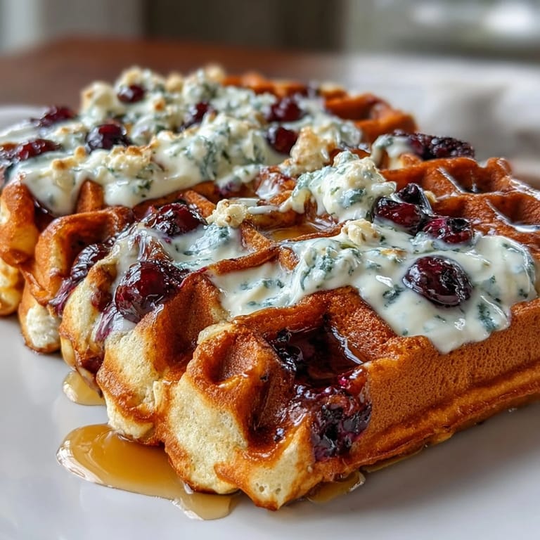 - Top each waffle with a generous dollop of maple yogurt, scatter fresh blueberries across the top, drizzle with additional maple syrup, and finish with a sprinkle of lemon zest if you're feeling fancy. Eat immediately while the crispy exterior is still crackling.